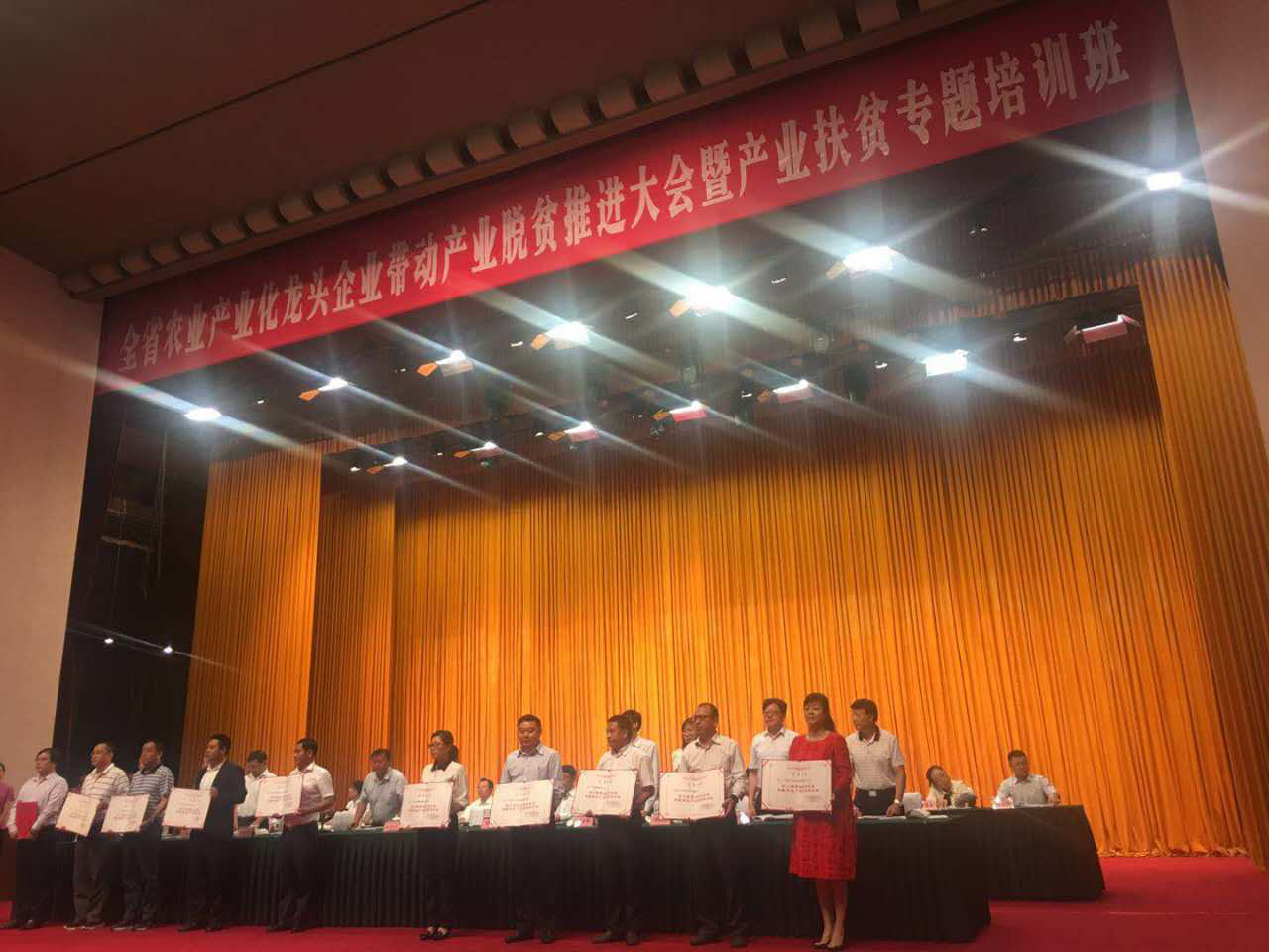 2017年9月25日,全省農(nóng)業(yè)產(chǎn)業(yè)化龍頭企業(yè)帶動(dòng)產(chǎn)業(yè)脫貧推進(jìn)大會(huì)暨產(chǎn)業(yè)扶貧專題培訓(xùn)班在成都金牛賓館召開。省農(nóng)業(yè)產(chǎn)業(yè)化龍頭企業(yè)帶動(dòng)脫貧攻堅(jiān)聯(lián)席會(huì)議成員單位負(fù)責(zé)人、21市州和160個(gè)有脫貧任務(wù)的縣(市、區(qū))黨政分管領(lǐng)導(dǎo),以及相關(guān)部門單位負(fù)責(zé)人齊聚一堂,總結(jié)交流龍頭企業(yè)帶動(dòng)產(chǎn)業(yè)脫貧經(jīng)驗(yàn)做法,學(xué)習(xí)產(chǎn)業(yè)扶貧政策知識(shí)等。
