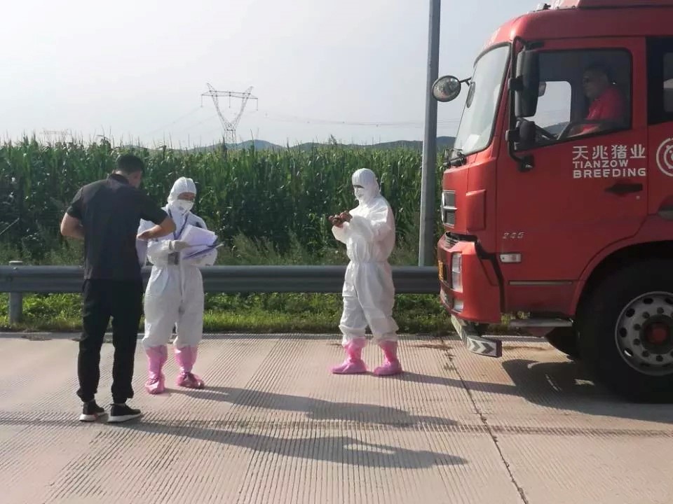 此外,為了確保在非洲豬瘟肆虐的環(huán)境下,保證法系原種豬成功入駐,勃利天兆也進行了萬無一失的準備。事前對場地與裝運車輛進行三次清洗消毒與高溫烘干,并進行全面檢測。運輸過程不停車、司機全程不下車。為保證種豬疫病防控安全,勃利縣動物防疫監(jiān)督工作人員現(xiàn)場辦公進行查證驗物,并監(jiān)督消毒。轉運完成后,經檢測從場區(qū)周邊環(huán)境到豬只健康全部達標。