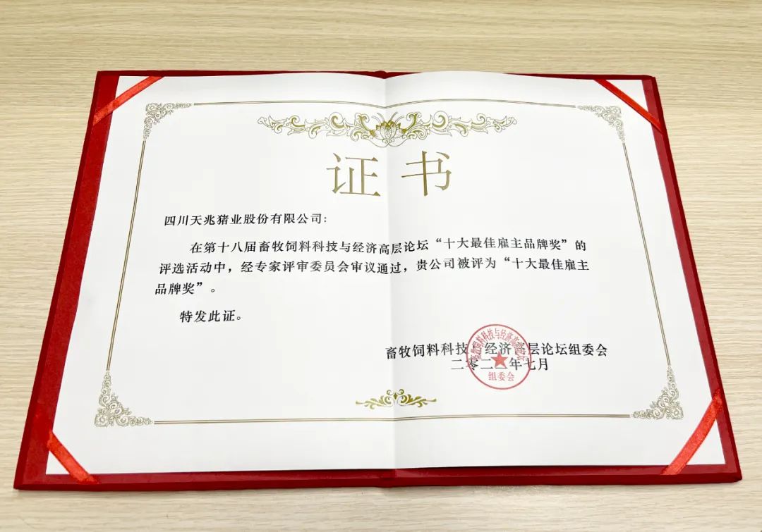 點(diǎn)贊!天兆豬業(yè)獲評(píng)十大最佳雇主品牌獎(jiǎng)